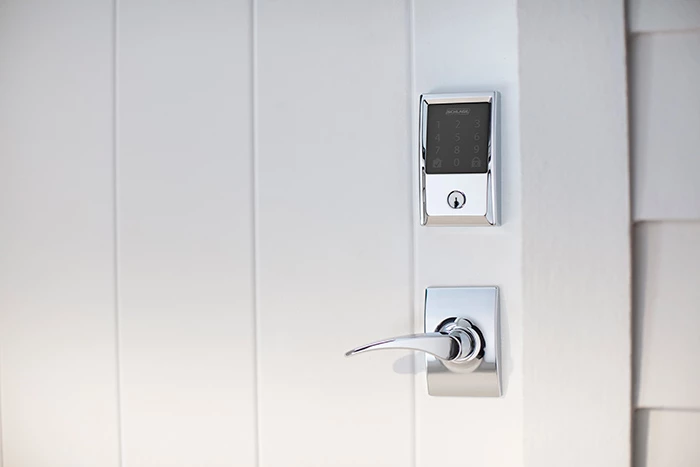 Schlage Century Encode Smart Wifi Door Lock with Alarm and Latitude Lever Handleset in Satin Nickel