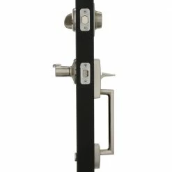 Schlage Century Satin Nickel Single Cylinder Deadbolt with Left Handed Merano Handle Door Handleset