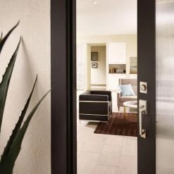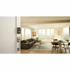Schlage Century Satin Nickel Single Cylinder Deadbolt with Right Handed Merano Handle Door Handleset