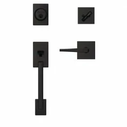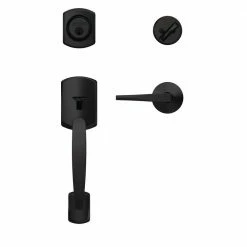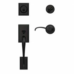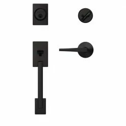 Schlage Custom Greenwich Matte Black Single Cylinder Door Handleset with Eller Door Lever