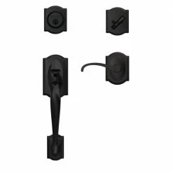 Schlage Custom Camelot Matte Black Single Cylinder Door Handleset with Whitney Door Lever