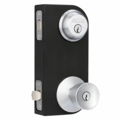 Schlage Satin Nickel Single Cylinder Deadbolt with Georgian Entry Door Knob Combo Pack