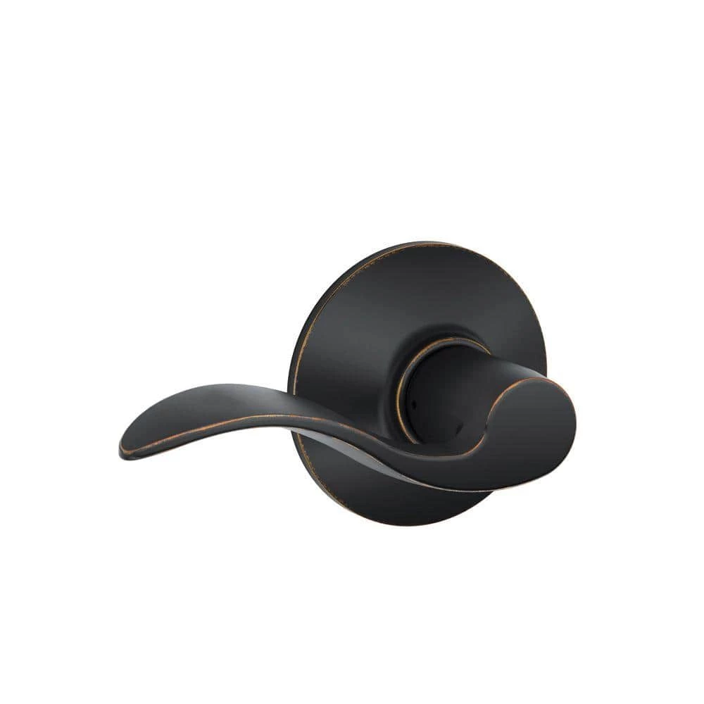 The Schlage Accent Aged Bronze Passage Door Lever is perfect for use on hall and closet doors where locking is not needed. The Accent Lever is widely popular for its elegant wave-like design that effortlessly matches a rooms style without overshadowing it. Our Aged Bronze finish is inspired by traditional design, featuring warm, copper tones that break through its darker, aged exterior. The universal design of this passage door lever set allows it to be mounted to left or right swing doors. Plus, it’s been designed and tested with strength and durability in mind.