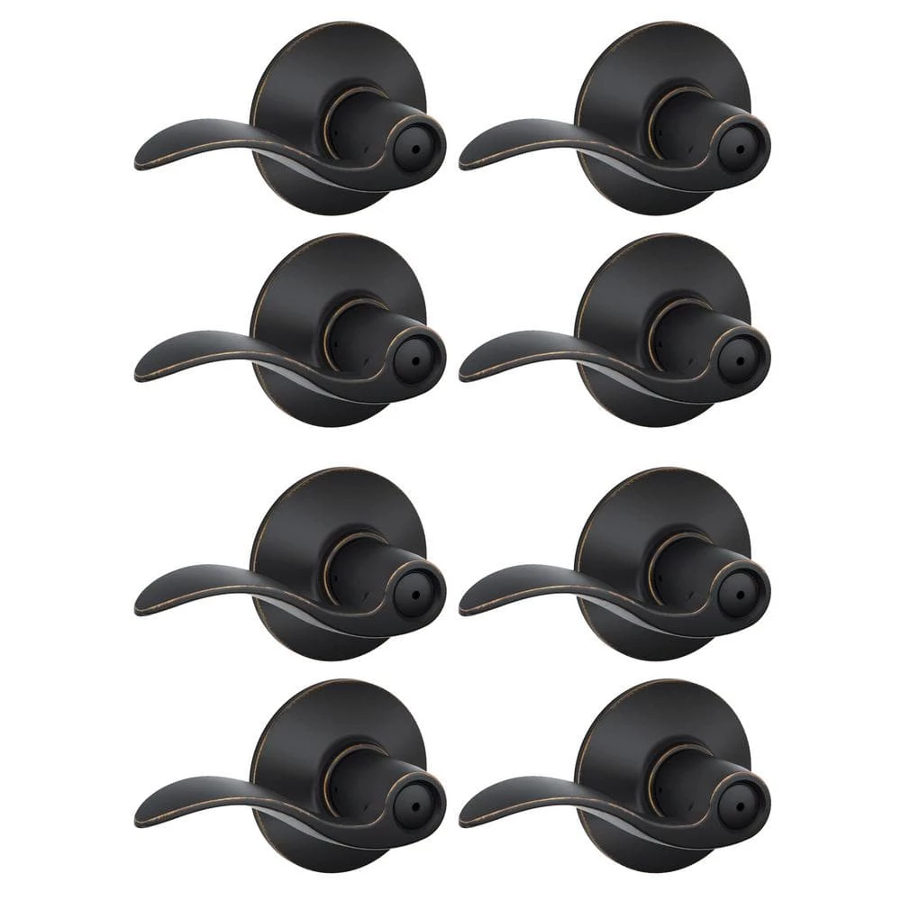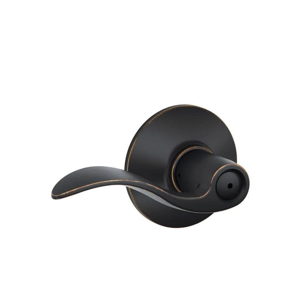The Schlage Accent Aged Bronze Privacy Door Lever is perfect for interior doors where locking is needed, such as bedroom and bathroom doors. The Accent Lever is widely popular for its elegant wave-like design that effortlessly matches a rooms style without overshadowing it. Our Aged Bronze finish is inspired by traditional design, featuring warm, copper tones that break through its darker, aged exterior. Its universal design allows it to be mounted to left or right swing doors. Plus, its been designed and tested with strength and durability in mind.