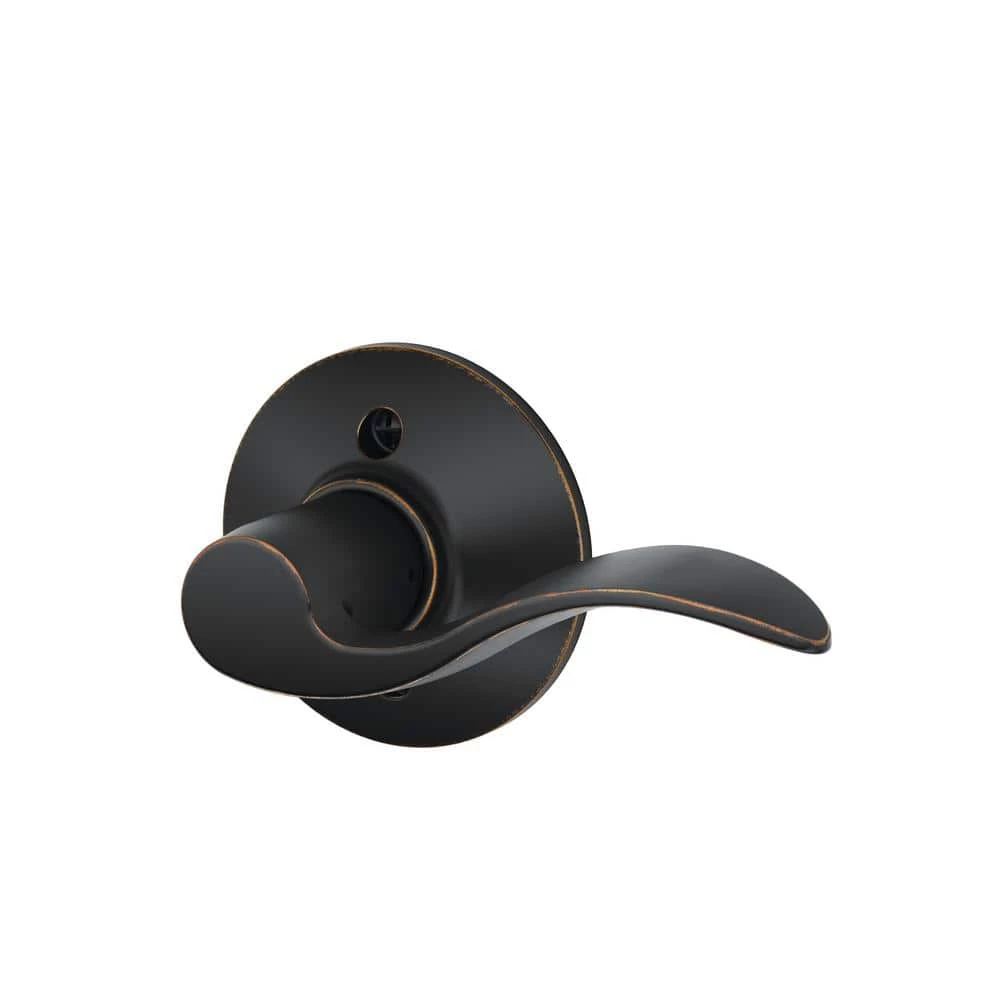 The Schlage Accent Aged Bronze Dummy Door Lever doesn’t turn and is commonly used as a decorative pull for doors that don’t require latching. The accent lever is widely popular for its elegant wave-like design that effortlessly matches a room’s style without overshadowing it. Our aged bronze finish is inspired by traditional design, featuring warm, copper tones that break through its darker, aged exterior. Plus, it’s been designed and tested with strength and durability in mind.
