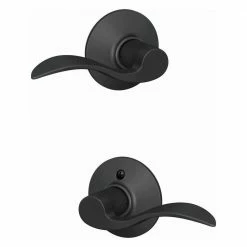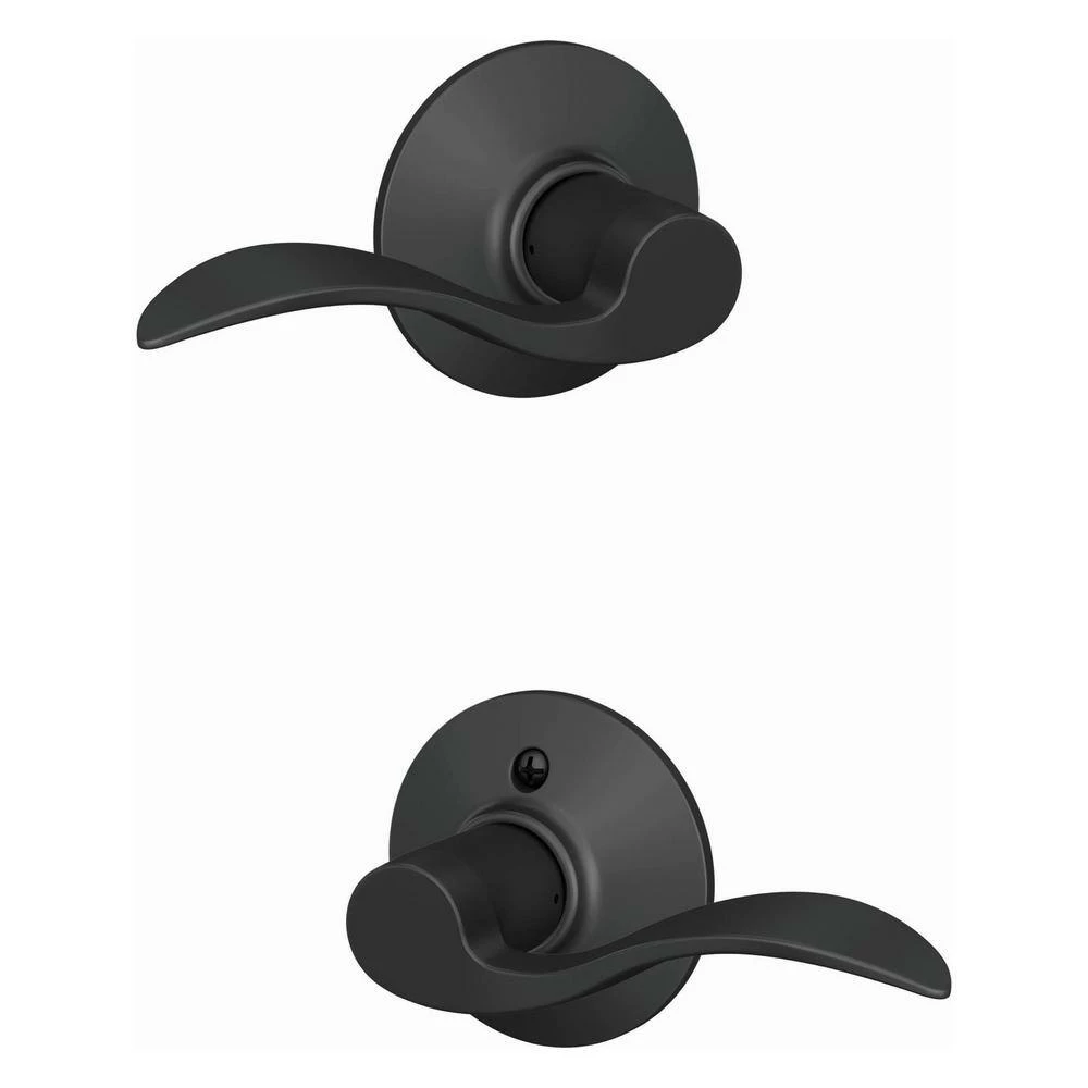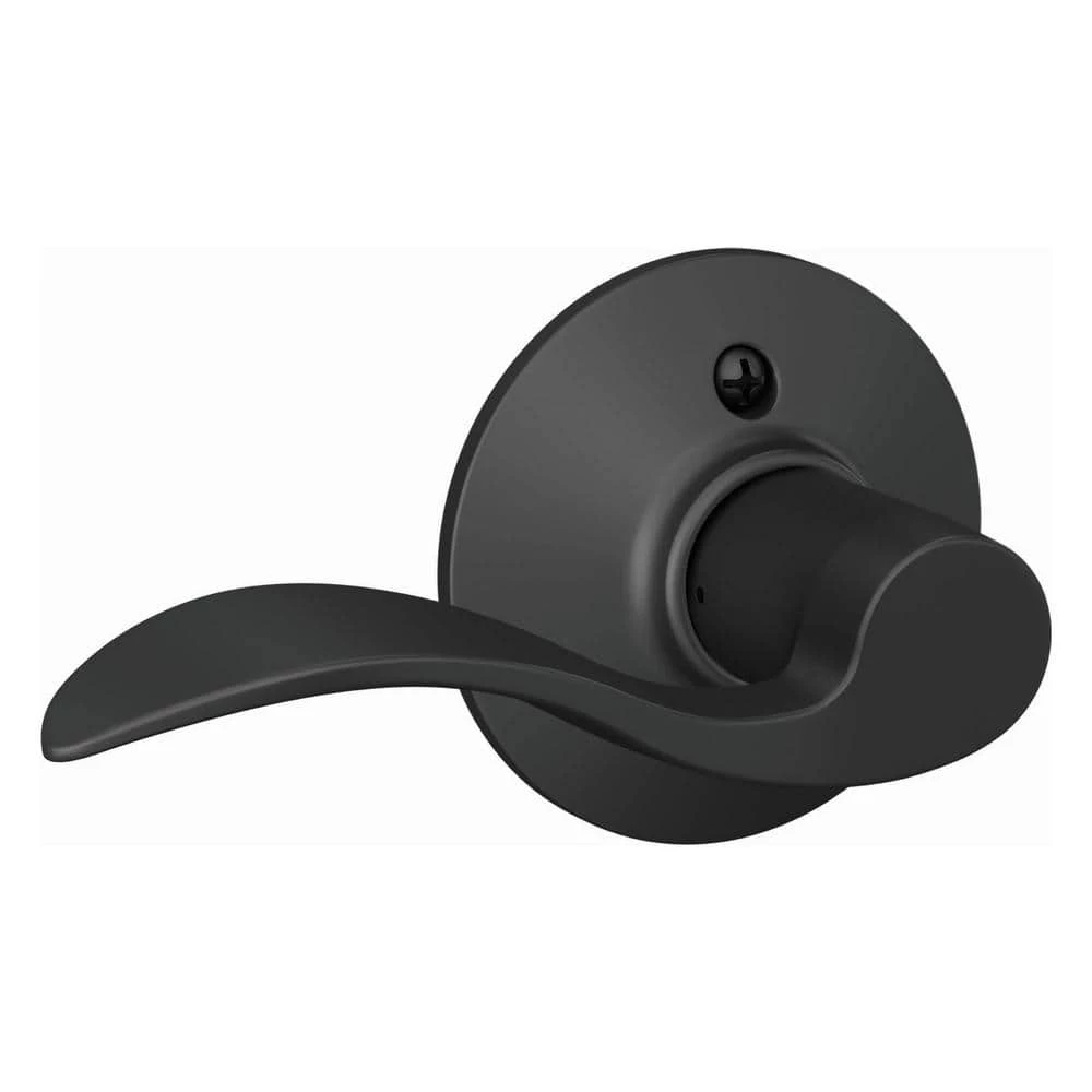 The Schlage Accent Lever Hall and Closet Lock in Matte Black is perfect for use on doors where locking is not needed. The Accent Lever is widely popular for its elegant wave-like design that effortlessly matches a rooms style without overshadowing it. The striking appearance of the Matte Black finish creates an elegant look that’s sure to be noticed in any style setting. Plus, its been designed and tested with strength and durability in mind.