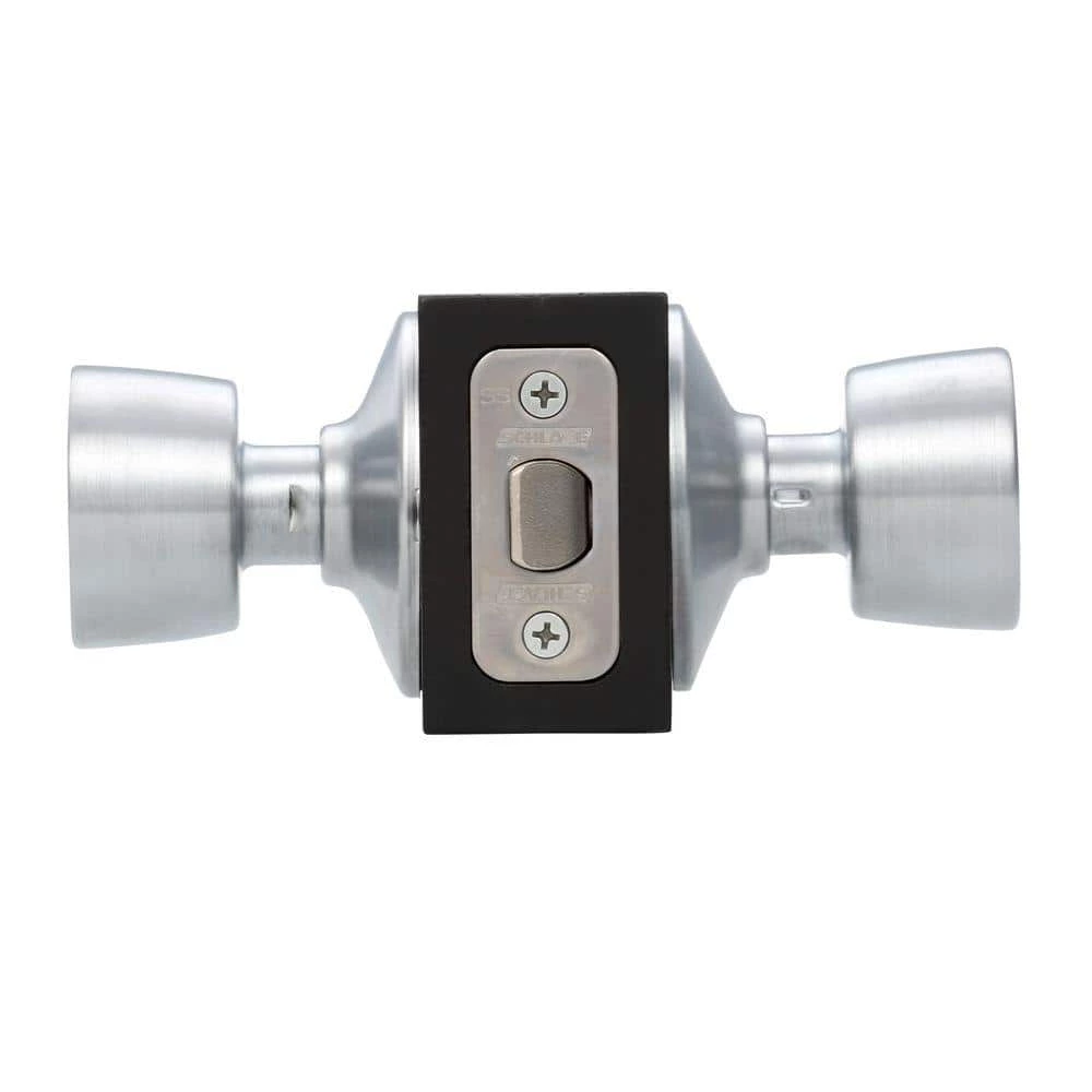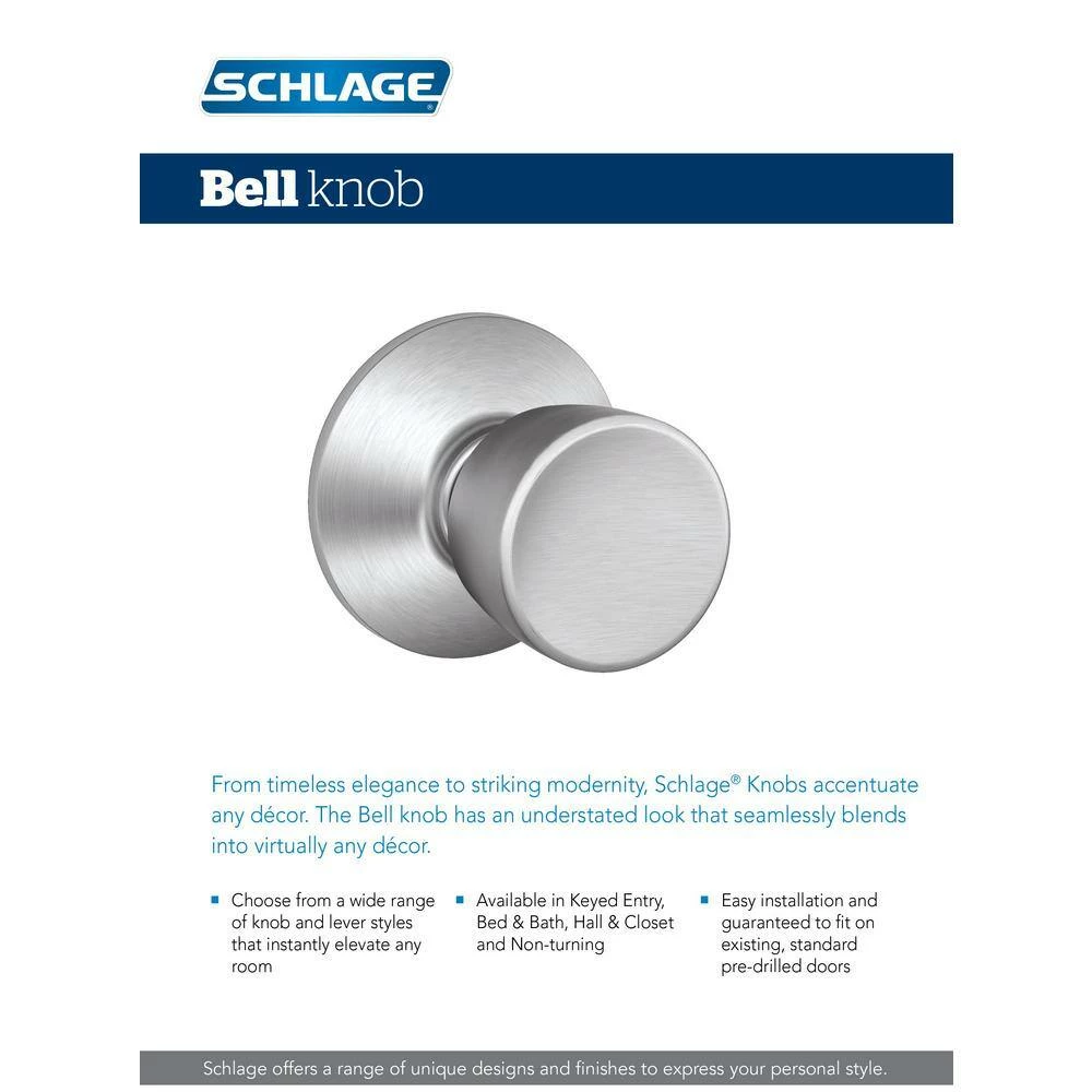 The Schlage Bell Satin Chrome Bed and Bath Knob is perfect for use on doors where locking is needed. The Bell knob has an understated look that seamlessly blends into virtually any decor and becomes especially edgy when finished in Satin Chrome. Plus, its been designed and tested with strength and durability in mind.