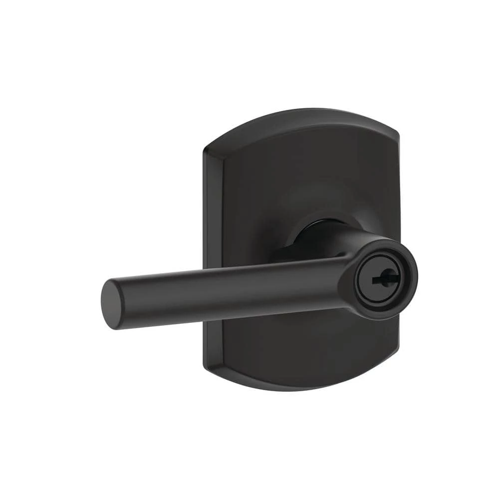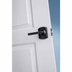 The Schlage Broadway Lever with Greenwich Trim Hall and Closet Lock in Matte Black is perfect for use on doors where locking is not needed. The minimal, tubular design of the Broadway lever offers a tastefully reserved yet high-style look, while the Greenwich Trims simple and chic look is especially glamorous. The striking appearance of the Matte Black finish creates an elegant look that’s sure to be noticed in any style setting. Plus, its been designed and tested with strength and durability in mind.