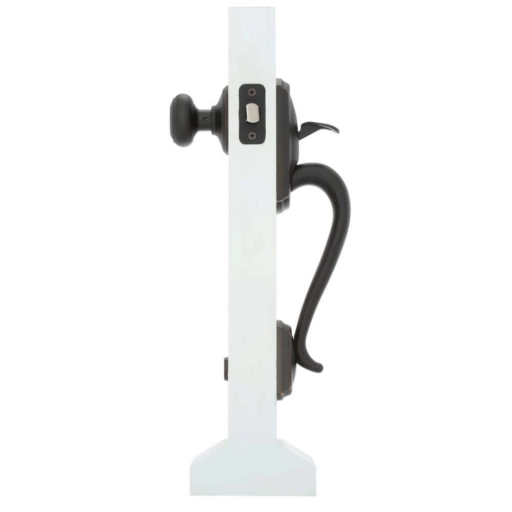 - Lower portion of handle set features an exterior grip and interior door lock, pair with a keypad deadbolt or mechanical deadbolt to create a grand entrance for your home