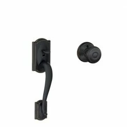 The Schlage Camelot Aged Bronze Entry Door Handle set is perfect for use on exterior doors where extra security is needed. The Georgian knob design features classically inspired details for timeless appeal and the handle’s Camelot trim features scalloped architectural details make any room charming and approachable. Its Aged Bronze finish features warm, copper tones that break through its darker, aged exterior. The knob unlocks when the door is opened from the inside, allowing you to leave quickly and conveniently and re-enter easily. Plus, it was designed and tested with strength and durability in mind.