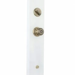 The Schlage Camelot Antique Brass Single Cylinder Deadbolt with Georgian Knob Door Handleset is perfect for use on exterior front doors. The modest Georgian knob features symmetrical detailing throughout, while the Camelot handleset’s scalloped architectural details make any room charming and approachable. The rich brown hues and golden undertones of Antique Brass lend a warm, inviting appeal to the handleset. Plus, it’s been designed and tested with strength and durability in mind.