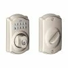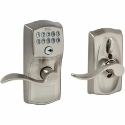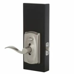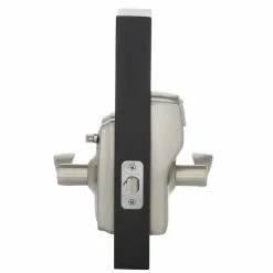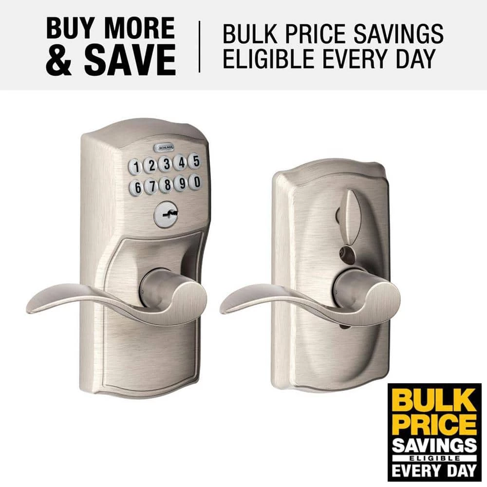 Eliminate the hassle of house keys with the Accent Satin Nickel Keypad Electronic Door Lever with Camelot Trim Featuring Flex Lock. With this electronic door lever, you can control entry to your home more easily and securely, and our Flex-Lock feature allows you to set the lock to automatically re-lock after 5-seconds of inactivity. The LED backlight keypad is able to hold up to 19 different user codes for your convenience, and features a low battery indicator. Also, this electronic keypad runs on a single 9-Volt battery, which is included. All in a slim profile and stylish trim that pairs perfectly with interior hardware. The Accent lever is widely popular for its elegant wave-like design that effortlessly matches a home’s style without overshadowing it, while the Camelot trim’s scalloped architectural details add charm to any home. The lever is especially versatile when wrapped in our Satin Nickel finish. Plus, it’s been designed and tested with strength and durability in mind.