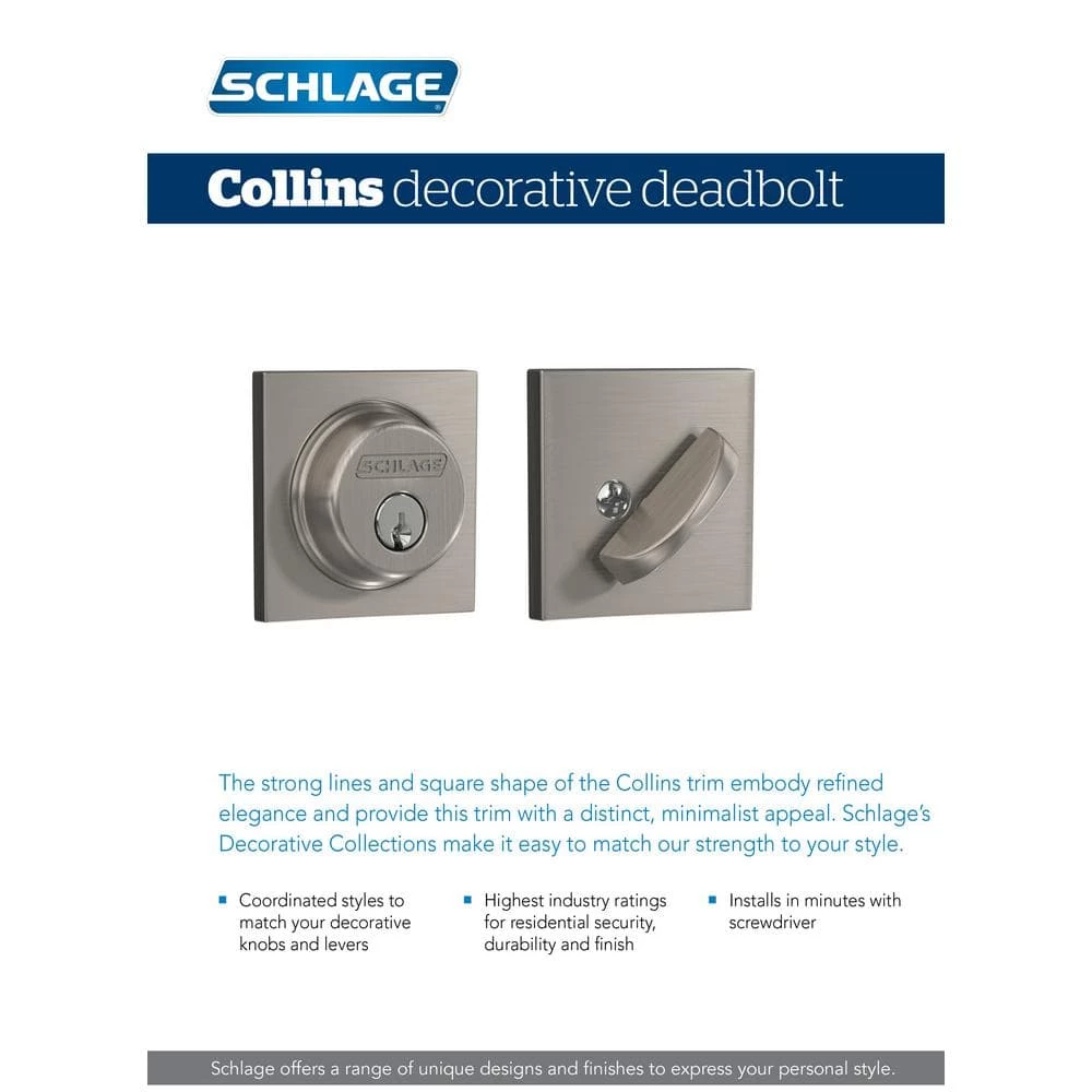 - TRUSTED WARRANTY: Schlage locks are backed by a limited lifetime mechanical and finish warranty; see Schlage warranty for full details