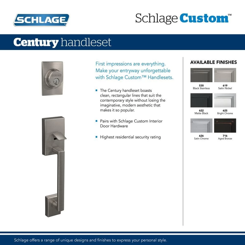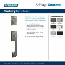 - Style and finish pair with Schlage custom interior door hardware so you can coordinate your home’s hardware style inside and out