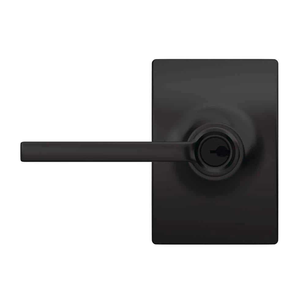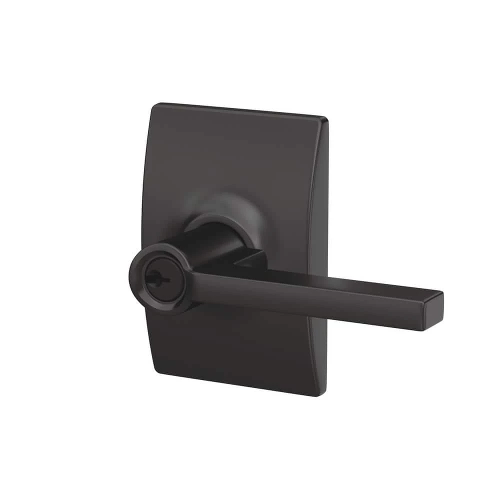 The Schlage Latitude Matte Black Keyed Entry Door Lever with Century Trim unlocks when the door is opened from the inside, allowing you to leave quickly and conveniently, and re-enter easily. The Latitude lever offers a crisp perspective on minimalist design with its clean lines and rectangular features, while the Century Trim is chic with a delicate, slightly curved shape. The striking appearance of the Matte Black finish creates an elegant look that’s sure to be noticed in any style setting. Plus, its been designed and tested with strength and durability in mind.