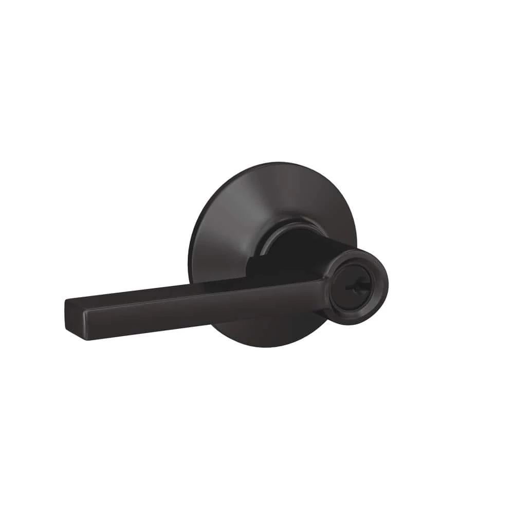 The Schlage Latitude Matte Black Keyed Entry Door Lever is perfect for use on exterior doors where extra security is needed. The Latitude lever features a minimalistic design with clean lines and rectangular features. Our striking Matte Black finish creates an elegant look that’s sure to be noticed in any style setting. The lever unlocks when the door is opened from the inside, allowing you to leave quickly and conveniently and re-enter easily. Plus, it was designed and tested with strength and durability in mind.
