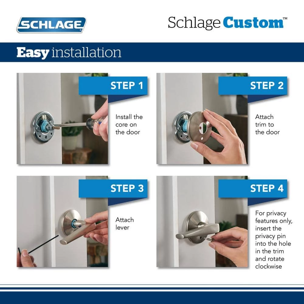 The Schlage Custom Latitude Matte Black Dummy Door Lever with Kinsler Trim is uniquely designed with premium style in mind, featuring low profile trim and concealed screws for a more polished look. Schlage Custom dummy hardware comes in pairs, making it perfect for French doors. The Latitude lever offers a crisp perspective on minimalist design with its clean lines and rectangular features. The striking appearance of the Matte Black finish creates an elegant look that’s sure to be noticed in any style setting.