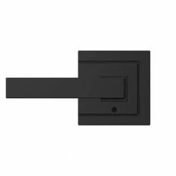The Schlage Custom Northbrook Lever with Upland Trim Passage and Privacy Lock in Matte Black is uniquely designed to work on both Hall/Closet and Bed/Bath doors. It’s easy to switch between locking and non-locking functions. Just insert or remove the locking pin from the pinhole on the interior side of the hardware. Schlage Custom hardware is also designed with premium style in mind, featuring low profile trim and concealed screws for a more polished look. The Northbrook lever is imaginative and refined with a strong contemporary influence, while the Upland trim offers a fresh take on simplistic design. The striking appearance of the Matte Black finish creates an elegant look that’s sure to be noticed in any style setting.
