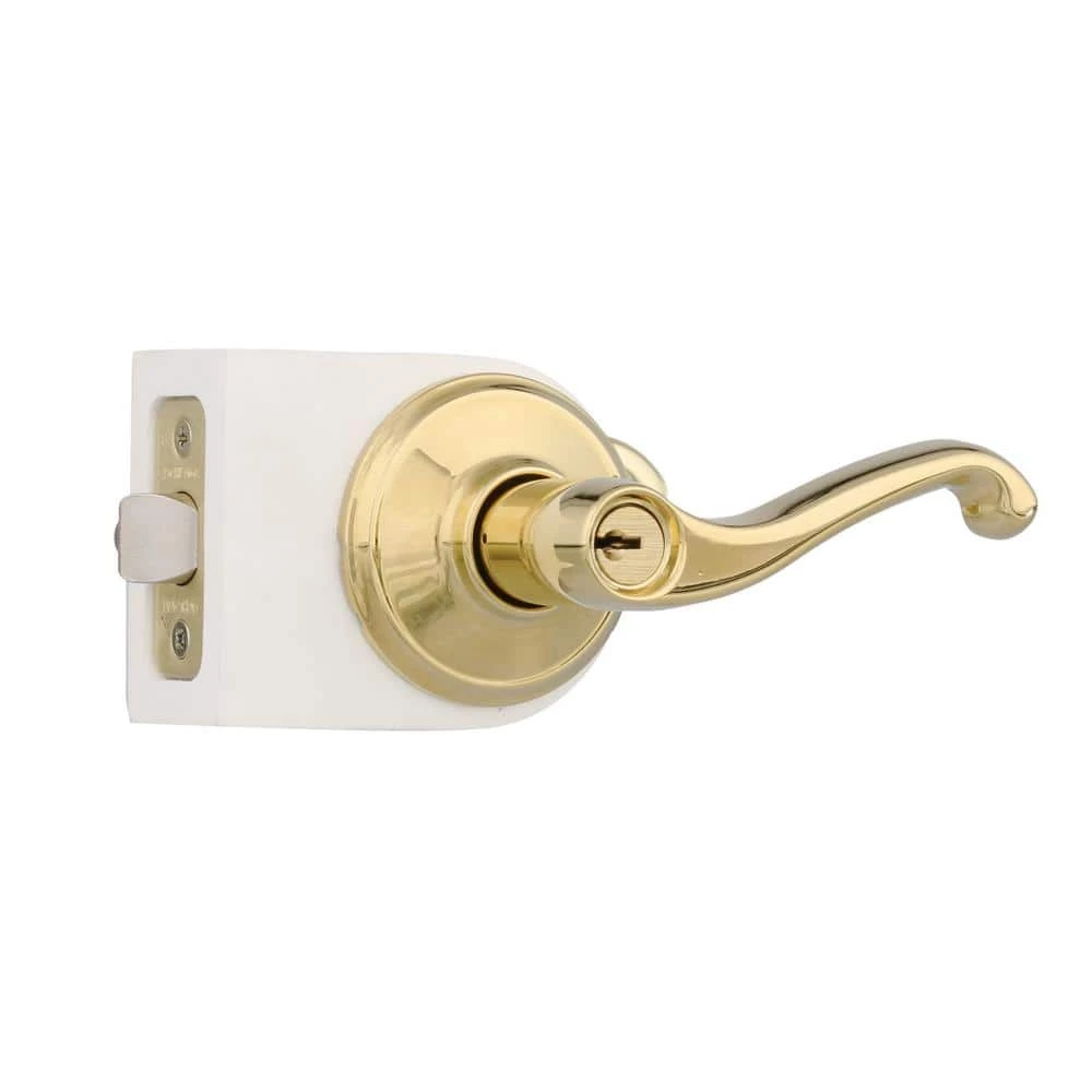 The Schlage Flair Lever Keyed Entry Lock in Bright Brass is perfect for use on entry doors where keyed locking is needed. The elegant Flair lever’s ornate details are reminiscent of a paper scroll. When finished in Bright Brass, the lever takes on a warm golden sheen that adds a vintage appeal. Plus, it’s been designed and tested with strength and durability in mind.