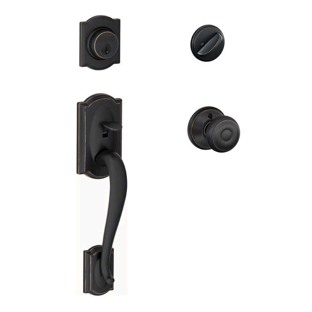 Schlage Georgian Aged Bronze Camelot Trim Single Cylinder Knob Door Handleset