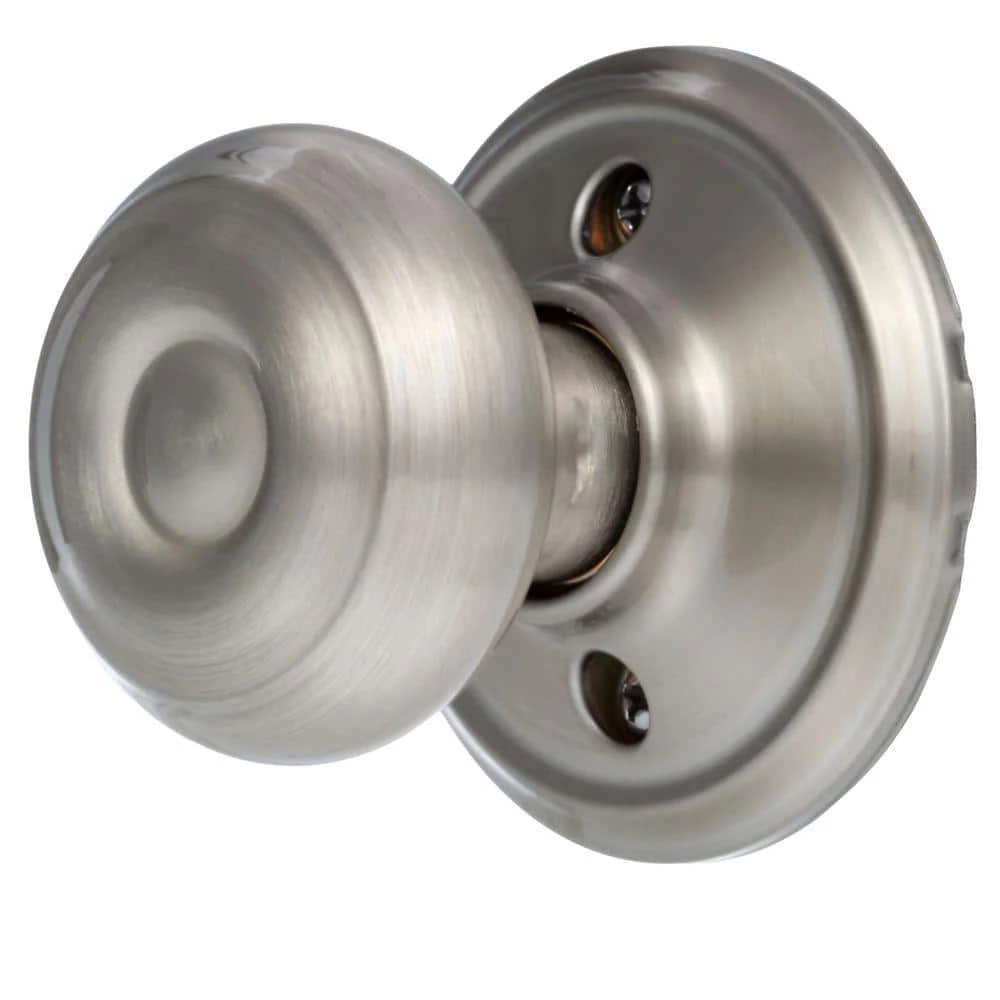 The Schlage Georgian Satin Nickel Dummy Door Knob doesn’t turn and is commonly used as a decorative pull for doors that don’t require latching. The modest Georgian knob features symmetrical detailing throughout and is especially popular in our versatile Satin Nickel finish. It’s a nice complement to other satin nickel plumbing and lighting fixtures, giving your home a cohesive look. Plus, it’s designed and tested with strength and durability in mind, protected by a lifetime limited warranty for decades of dependable use.