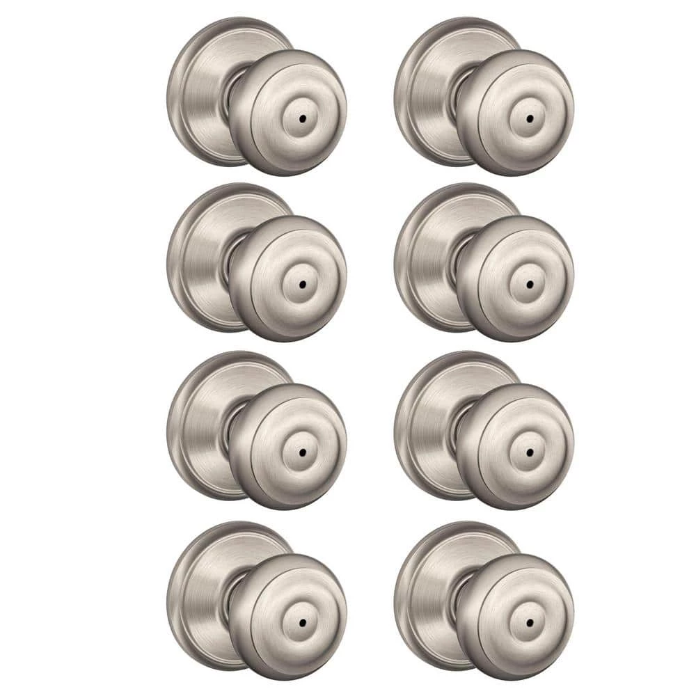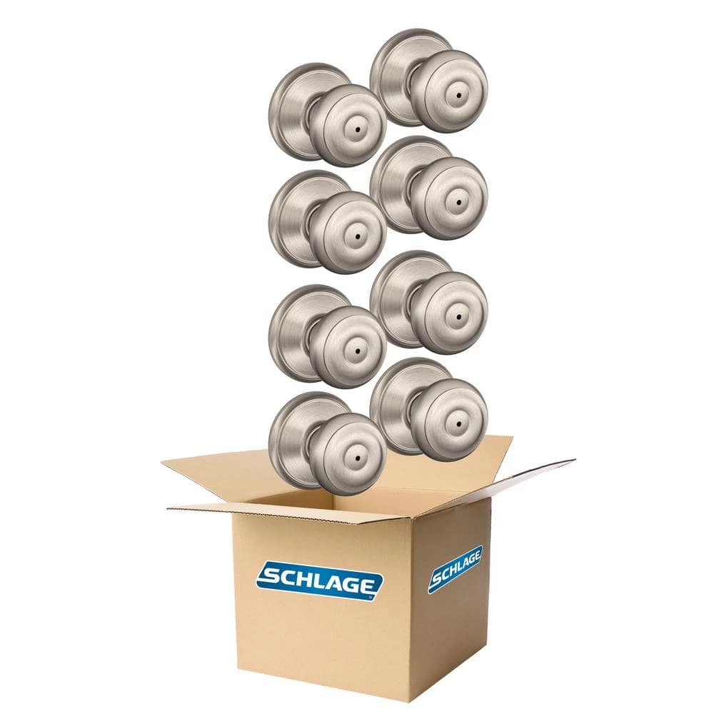 The Schlage Georgian Satin Nickel Privacy Door Knob is perfect for interior doors where locking is needed, such as bedroom and bathroom doors. The Georgian Knob features symmetrical detailing for a distinguished look in your home- especially when wrapped in our versatile Satin Nickel finish. The universal design of this privacy knob set allows it to be mounted to left or right swing doors and the finish coordinates nicely with other Satin Nickel fixtures in your house for a cohesive look. The workmanship and lustrous finish are protected by a lifetime limited warranty, certain to provide decades of dependable use and allure.