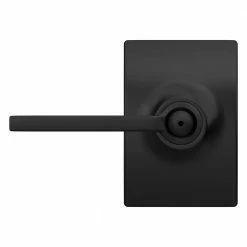 The Schlage Latitude Matte Black Privacy Door Lever with Century Trim is perfect for interior doors where locking is needed, such as bedroom and bathroom doors. The Latitude lever offers a crisp perspective on minimalist design with its clean lines and rectangular features, while the Century trim is chic with a delicate, slightly curved shape. The striking appearance of the Matte Black finish creates an elegant look that’s sure to be noticed in any style setting. Its universal design allows it to be mounted to left or right swing doors. Plus, it’s been designed and tested with strength and durability in mind.