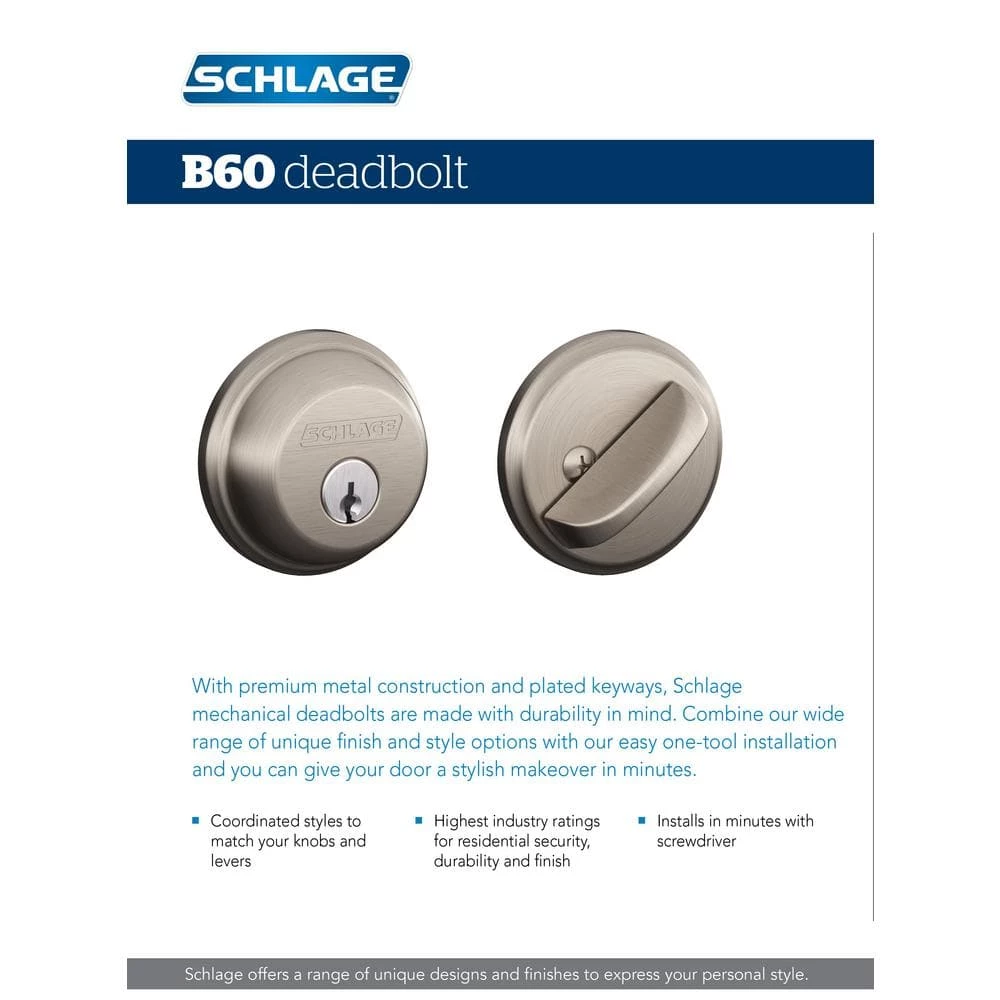 - TRUSTED WARRANTY: Schlage locks are backed by a limited lifetime mechanical and finish warranty; see Schlage warranty for full details