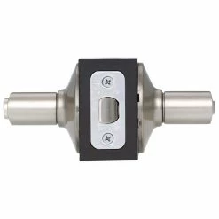 - HASSLE-FREE FIT: Universal latch slides easily into place to fit standard doors with 2-3/8″ or 2-3/4″ backsets and requires no tools or manual adjustments; fits door thickness 1-3/8″ to 1-3/4″; includes both radius and drive-in faceplate for flexibility